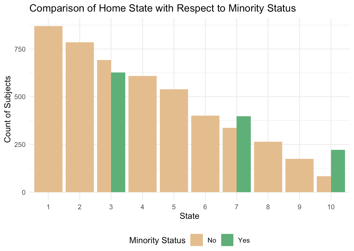 • Minority groups mainly live in states 3, 7, and 10, so they aren't as widely represented. Also, people living in states 1 and 2 are most favoured to receive coupons.