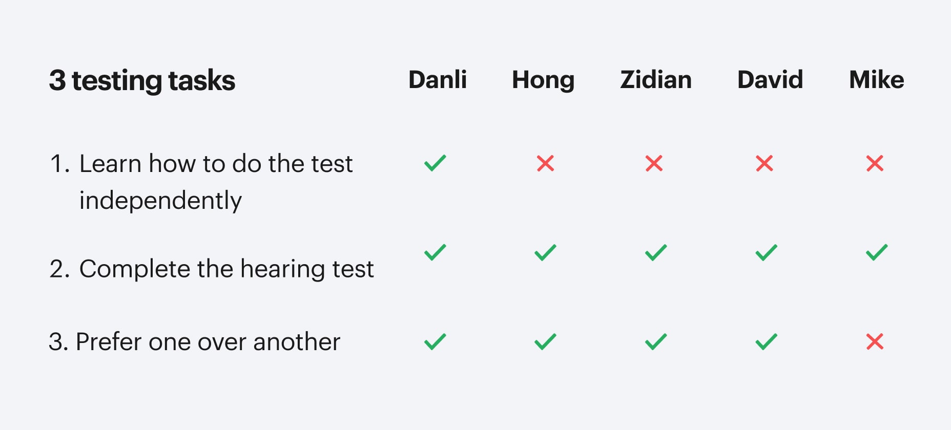 Working with brand designer, Hans, we developed a new prototype with the onboarding setup and tutorial. Then with product manager, we posted the test hiring info within the company and let the participants do competitors' hearing screenings before trying our new design, allowing for a direct comparison with existing market products.
