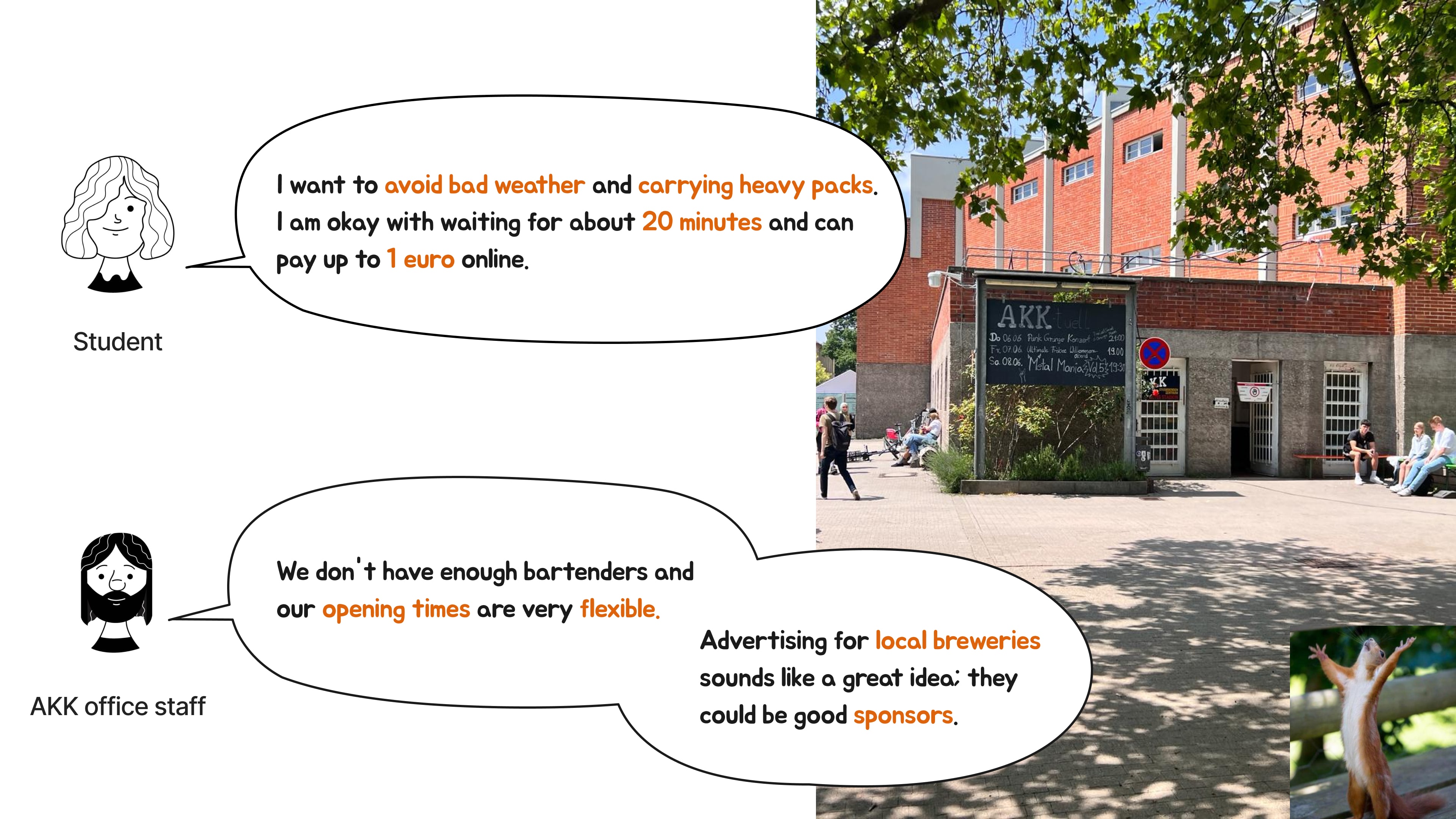 The Mechanical team and I visited the campus to interview 6 students on the street and 2 staff members in the AKK (campus bar) office.